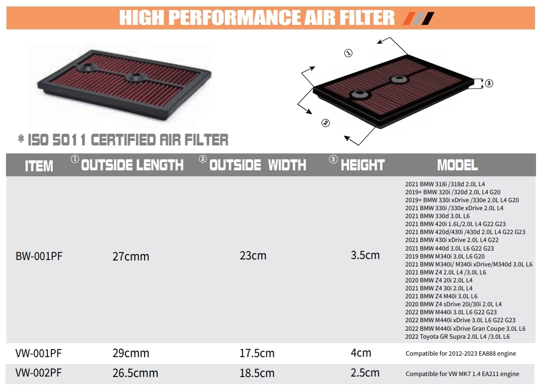 For best results and maximum performance, we recommend using our intake system together with our filter as a complete setup.