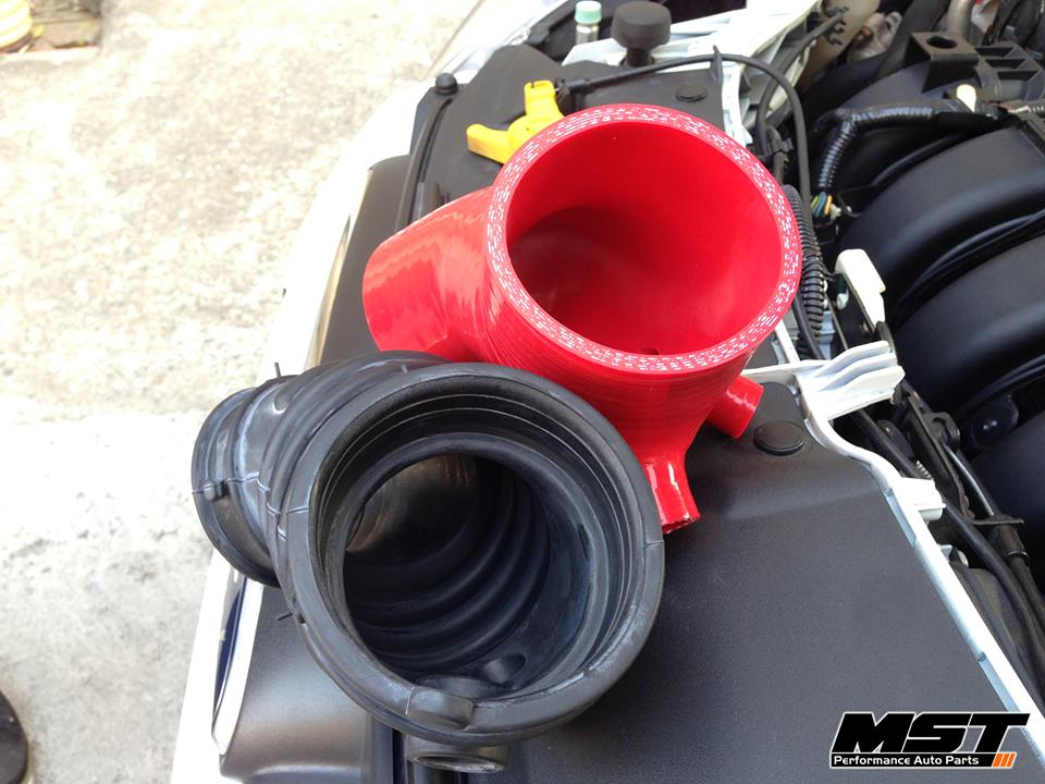 The MST inlet hose is engineered to increase airflow and replace the restrictive factory hose between the airbox and the inlet pipe. By removing the pleats found in the OEM inlet hose, the MST inlet hose is perfectly smooth on the inside and has a significantly larger internal diameter than the OEM part which increases airflow considerably.